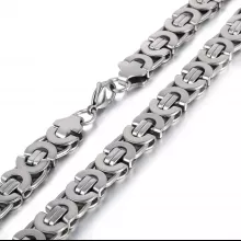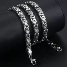 Each necklace is meticulously crafted from high-quality 316L stainless steel, known for its strength and resistance to tarnishing. The intricate Byzantine link design adds a unique geometric pattern that catches the eye, making it an ideal choice for those who appreciate fine details. With no pendant to distract, the focus remains on the sophisticated chain design.