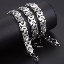 Introducing the ultimate accessory for the modern man – the 11mm Stainless Steel Flat Byzantine Link Chain Necklace. Perfectly blending style with durability, this necklace is more than just a piece of jewelry; it’s a statement. Whether you’re dressing up for a party or adding a touch of elegance to your everyday look, this necklace ensures you stand out in any crowd.