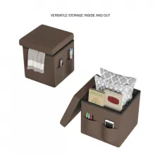 Constructed with durable MDF and covered in a stylish polyester and poly suede blend, these ottomans are built to last. The foam-padded lid ensures comfortable seating, while the foldable design allows for effortless setup and storage. With two exterior pockets, keeping your essentials organized and within reach has never been easier. From toys and magazines to remote controls, everything finds its place.