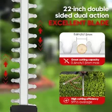 Our hedge trimmer stands out with its blend of power, precision, and ease of use. The innovative double-sided blade ensures efficient cutting from any angle, while the lightweight design allows for longer use without discomfort. The quick-charging, long-lasting battery makes it a reliable choice for gardeners who value efficiency and effectiveness.