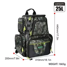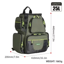Unleash your passion for fishing with our 25L 7.5L Backpack Large Storage Fishing Bags in Army Green or Camouflage Green. Crafted for the outdoor enthusiast, this quality bag boasts a 3-layer design and durable nylon material, ensuring it stands up to the rigors of your fishing adventures.