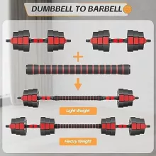 - 3-in-1 Design: Easily convert between dumbbells, a barbell, and push-up stands.