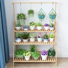 Imagine your favorite blooms and greens elegantly organized on this chic bamboo stand, transforming your space into a vibrant, living piece of art. Not only does it allow for a stunning display, but it also helps keep your plants organized and accessible for watering and care. The foldable design ensures that when not in use, or when space is at a premium, it can be easily stored away.