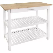 Our kitchen island stands out for its blend of style, durability, and functionality. Not made in China, it promises quality and uniqueness. The natural wood top provides a durable surface for food preparation, while the white finish adds a touch of elegance. The additional storage options and towel rack enhance its practicality, making it a must-have for any modern kitchen.