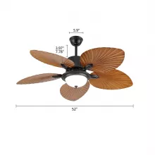 52″ Tropical Palm Leaf Blade Ceiling Fan with Dimmable LED Chandelier and Remote Control