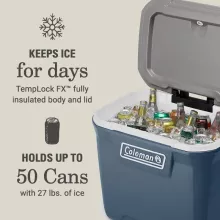 - Spacious enough to hold up to 50 cans with 27 lbs. of ice
