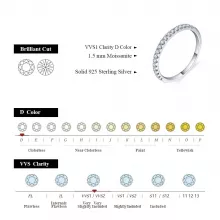 What sets this ring apart is its meticulous craftsmanship and premium materials. The ring boasts a total of 0.27 ct of round, excellent cut moissanite diamonds. Each of the 18 pieces is precision-cut, measuring 1.5mm, ensuring maximum brilliance and sparkle. The moissanite diamonds are of the highest quality – VVS EF grade, guaranteeing a flawless appearance. Set in 100% 925 sterling silver, the ring has a luxurious white gold appearance, complemented by a white rhodium plating that enhances its beauty and durability.