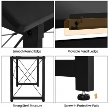 Our drafting table is not just another piece of furniture; it’s a gateway to enhancing your productivity and comfort. With a powder-coated steel frame and PVC-coated MDF tabletop, it promises durability and stability. The sleek black finish complements any home decor, making it a versatile addition to your arts and crafts area, den, living room, or home office. The simple assembly process, with detailed instructions included, means you’ll be ready to create in no time.