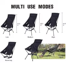 Our Adjustable High-Back Oversize Camping Chair is versatile, making it suitable for a wide range of outdoor activities. Ideal for camping, hiking, fishing, picnics, and concerts, it also serves as an excellent choice for your balcony, lounge, or study. Its sleek black color and simplistic design blend seamlessly with any setting, offering both style and functionality.