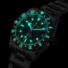 Suitable for any occasion, this watch effortlessly transitions from formal events to casual outings. The luminous hour markers on the black dial guarantee readability, day or night. The “snowflake” hands elegantly dance around the 24-hour scale, offering a unique visual appeal.