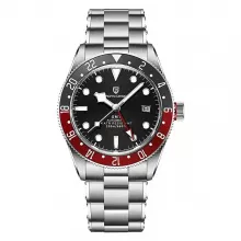 - Burgundy and Blue Outer Ring: Unique GMT feature for dual-time zone display