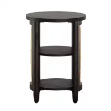 What sets this side table apart is its unique blend of modern style and traditional materials. The decorative rattan insert and charcoal finish offer a timeless look that complements any interior design theme. The solid construction and thoughtful design make it a practical yet beautiful addition to your home.