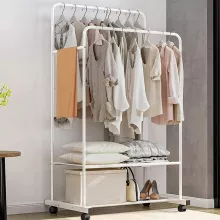 Introducing our Double Rail Clothes Rack with Shoe Storage, designed to bring harmony and elegance to any room. Crafted for those who appreciate a clutter-free and stylish living environment, this versatile rack offers a modern solution to keep your garments and accessories neatly organized. With its sleek white design, it seamlessly integrates into your bedroom, laundry room, or boutique, enhancing the aesthetic while providing practical storage solutions.