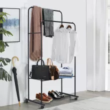 Don’t let clutter take over your space. Our Double Rail Clothes Rack with Shoe Storage is the perfect addition to any home, offering a stylish and practical way to keep things organized. Say goodbye to messy closets and hello to effortless elegance. Order now and transform your space into a haven of organization and style!