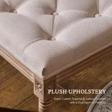 Introducing our exquisite ottoman stool, a masterpiece of functional art designed to elevate your home decor with a touch of French vintage charm. Merging modern durability with the timeless elegance of French country design, this stool features delicate wood carvings and elegant muted colors, making it a perfect complement to any interior. Whether placed in your living room, bedroom, or entryway, this versatile piece brings sophistication and style.