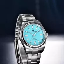 At the heart of this watch lies the NH35A Japan Movement, known for its reliability and precision. The 39.7mm case, made from robust 316L stainless steel, sits comfortably on the wrist, complemented by a 20mm band width. The sapphire crystal glass with anti-reflective coating ensures durability and clarity. Moreover, the matte black dial with 3D time scale and DLC white hands coated with a blue light-emitting substance ensures visibility in all conditions. Whether you’re in a dimly lit room or under the bright sun, this watch remains perfectly legible.