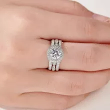 Genuine 925 Sterling Silver Round Shape Wedding Rings Set with AAAAA Cubic Zirconia