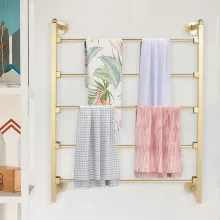 • Elegant Gold Finish: The rack’s gold color adds a touch of sophistication and charm to any room.