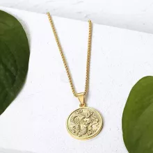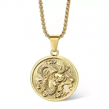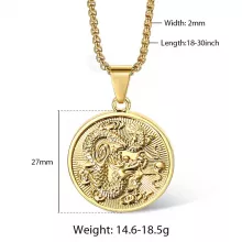 The Dragon Pendant Necklace stands out with its meticulous design and exquisite craftsmanship. The pendant, showcasing a round Chinese dragon in stunning detail, is crafted from high-quality metal with gold plating, ensuring both durability and an elegant shine. The pendant measures 27*27mm, making it an eye-catching yet comfortable size to wear. Paired with a stylish link chain, adjustable between 18-30 inches, this necklace offers both versatility and a trendy edge.