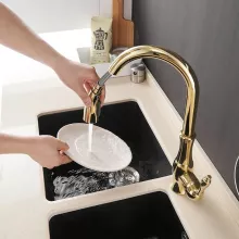 Our Gold Pull Out Kitchen Faucet is best utilized in modern kitchens where both style and functionality are prioritized. Whether you are renovating your kitchen or simply upgrading your kitchen fixtures, this faucet provides the perfect balance of modern elegance and practical utility. Its single hole installation and retractable spout make it a versatile choice for any kitchen layout, ensuring a seamless fit with your current sink setup.
