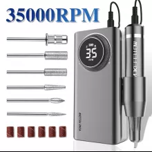 Our nail drill machine stands out with its impressive 35000RPM speed, ensuring efficient and quick nail work. The LED display adds a touch of modernity, allowing you to monitor speed and battery effortlessly. Plus, its skin-friendly UV scratch-resistant treatment guarantees durability and comfort during use.