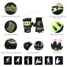 Introducing the ultimate companion for your nocturnal outdoor adventures – our LED Light-Up Cycling Gloves. Designed for versatility and performance, these gloves are perfect for cyclists, outdoor enthusiasts, and anyone in need of a light in the dark. With their built-in rechargeable LED lights, these gloves offer not just visibility but also the convenience of hands-free lighting.