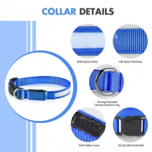 Our LED Safety Dog Collar not only keeps your pet safe but also offers a stylish look. It’s ideal for night walks, camping trips, or any outdoor adventure where visibility is crucial. The collar’s waterproof and durable design ensures it can withstand all weather conditions and playful activities. With its adjustable size and easy-to-use buckle, it’s convenient for everyday use. Plus, the rechargeable battery feature makes it an economical and environmentally friendly choice for pet owners.