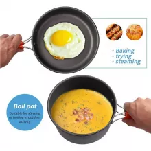 Whether you’re trekking through mountains, setting up camp in the forest, or enjoying a peaceful picnic by the lake, this cooking set is your ideal companion. Its lightweight design makes it a must-have for any backpacking trip, while its quick-cooking features mean you spend less time cooking and more time enjoying the great outdoors.