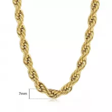 Elevate your fashion game with our exquisite New Fashion Twisted Rope Link Chain in stunning gold color. This stainless steel necklace for men is not just a piece of jewelry; it’s a statement of style and individuality. Crafted with precision and designed for versatility, this unisex chain is the perfect addition to your collection.