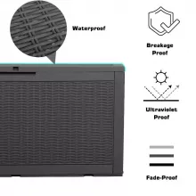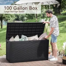 Made from PA+PE materials and proudly originating in the US, our Outdoor All-Weather 100 Gallon Resin Deck Box promises not just storage, but a testament to American craftsmanship. Elevate your outdoor lifestyle with a storage solution that is as reliable as it is stylish.