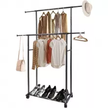 Simple Standard 2 Double Rod Clothing Metal Garment Rack