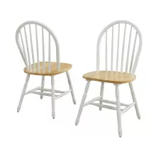 Make every meal a stylish affair with our Solid Wood Dining Chairs in a classic White and Oak finish. This set of two chairs from the Autumn Lane Collection combines elegance and tradition, drawing inspiration from farmhouse antiques. Crafted from solid wood, these chairs boast a timeless look that effortlessly complements any interior decor, from contemporary to traditional and everything in between.
