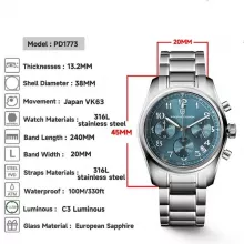 • The Japan VK63 movement ensures a blend of mechanical precision and quartz efficiency.
