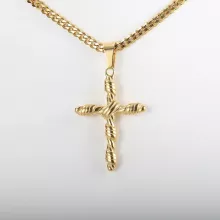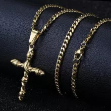 Stainless Steel Cross Pendant Necklace with Cuban Chain