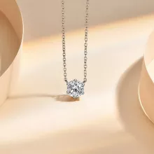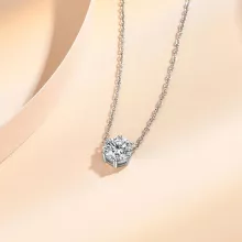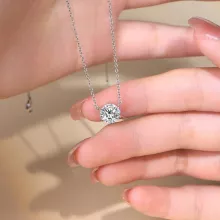 At the heart of this necklace is a 1.0ct round cut, D color VVS1 Moissanite diamond, known for its dazzling brilliance and clarity. The moissanite stone, set in 100% 925 sterling silver, captures the light beautifully, making it a true eye-catcher. Accompanying this is a delicate O-chain, adding a touch of grace to your neckline.