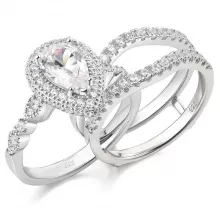 Sterling Silver Pear Cut Zircon Engagement Ring Set