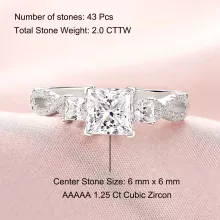 Our ring boasts a stunning princess cut cubic zirconia centerpiece, measuring 6x6mm and equivalent to 1.25ct. The sparkling AAAAA grade zirconia mimics the clarity and brilliance of a real diamond, set in high-quality, solid 925 sterling silver. The prong setting ensures security and enhances the stone’s radiance. With a total weight of 3.64g, this ring offers a substantial feel without compromising on comfort.