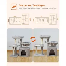 Introducing our 28.5” Small Cat Tree, the perfect blend of versatility, style, and entertainment for your feline friend. This innovative cat tower is designed to adapt to your living space, ensuring a perfect fit in any room corner or against the wall. The separate basement allows you to effortlessly transform its shape, adding a touch of customization to your cat’s play haven.