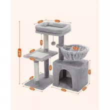 The cat tree boasts multiple scratchable sections, featuring natural sisal-covered scratching posts and pads. Not only do these satisfy your kitten’s natural scratching instincts, but they also help build a healthy scratching habit. The addition of a fluffy pompom enhances the fun factor, providing your baby cats with endless entertainment (and includes an extra replaceable pompom).