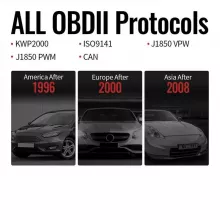 Our scanner is versatile, supporting most American, European, and Asian car models from 1996 onwards, and is compatible with all OBDII protocols. It accommodates a global audience with language support in English, Portuguese, Russian, Italian, Spanish, French, and German.
