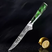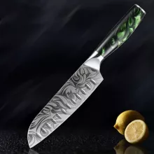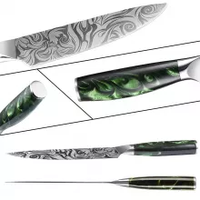 Elevate your cooking experience with our Ultra Sharp Luxury Chef Knife Set. Designed for both professional chefs and culinary enthusiasts, this exquisite set combines precision, elegance, and versatility. Each knife in the set is crafted from high-quality 5Cr15 stainless steel, ensuring strength and durability. The stunning green resin handles are not just visually appealing but also provide a comfortable, secure grip, making every cut effortless. Whether you’re slicing, dicing, or chopping, these knives are your perfect kitchen companions.