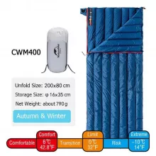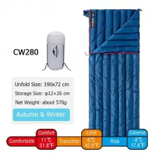 Our sleeping bag boasts an array of features to enhance your camping experience. With a size of 190*72 cm, it’s perfectly tailored for an adult, offering ample space without sacrificing warmth. The goose down filling provides excellent insulation, keeping you warm in temperatures as low as 5β. The envelope style allows for easy entry and exit, while the nylon fabric ensures waterproof and long-lasting use. Furthermore, its lightweight design, weighing just 570g, makes it a breeze to carry on any trek.