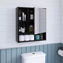 • Spacious Storage: Includes a fixed top shelf, two interior shelves behind the mirror with adjustable heights, and three open shelves for easy access.