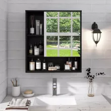 Introducing our space-saving, multifunctional bathroom mirror cabinet, designed to enhance your bathroom’s aesthetic while providing an ingenious storage solution. Perfect for small spaces, this wall-mounted cabinet combines a sleek, high-definition mirror with ample storage, making it an essential addition to your home. Say goodbye to cluttered countertops and hello to organized elegance.