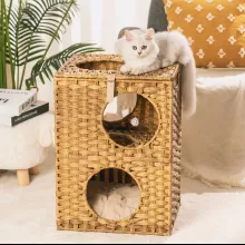 Introducing our Latest Rattan Cat House, a hand-woven masterpiece that goes beyond mere cat furniture. Elevate your cat’s lounging experience with a two-floor haven featuring five entry points, allowing your feline companion to climb and explore effortlessly.