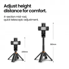 Take your selfies, vlogs, and live broadcasts to the next level with this Wireless Extendable Selfie Stick Tripod. Designed for creators, travelers, and everyday users, this lightweight yet durable stand combines convenience and style. With a quick extension from 4.3 inches to 14.2 inches, it helps you capture the perfect angle—anytime, anywhere. Whether you’re recording a vlog, live streaming, or snapping a group shot, this portable tripod keeps your phone steady and your content sharp.